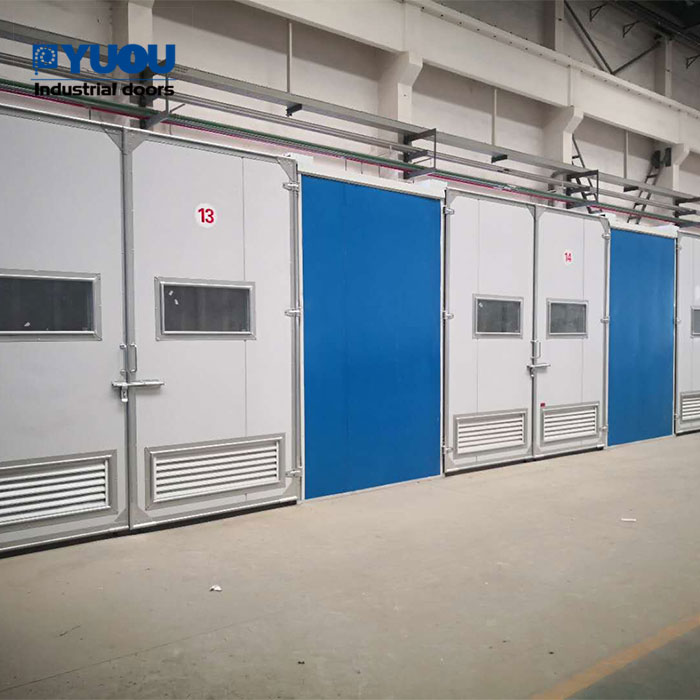 工業(yè)夾芯板大門廠家:豫歐門業(yè)生產(chǎn)的工業(yè)平開門具有以下特色:1.材質(zhì):門框(門包邊)為鋁合金型材或型鋼或不銹鋼,鋁型材門框壁厚2.5mm,門板為彩鋼復(fù)合板;2.配件:鋁型材軌跡,輪架,尼龍槽輪,上止動(dòng),防振球,鎖扣,導(dǎo)向輪,限位器,密封膠條等;3.特色:鞏固,抗風(fēng)能力大(12級(jí)風(fēng)),無噪音(尼龍槽輪和鋁型材軌跡),推拉簡便,密封性好,運(yùn)用壽命長,免維護(hù);4.運(yùn)轉(zhuǎn)方法:手動(dòng)為主,可電動(dòng);5.適用范圍:適用于中高 檔廠房車間,物流庫房等外用門。